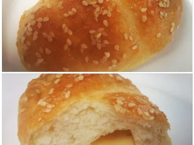 Testo narahlo zgnetemo in oblikujemo klobase s premerom cca. 4 cm, te pa zrežemo na 2 cm velike koščke. V dlani oblikujemo kruhke in jih zložimo na pekač obložen s peki papirjem. Kruhke premažemo z razžvrkljanim jajcem in posujemo s semeni, sesekljano pistacijo... Pečemo 8-10 minut pri 220 stopinjah.