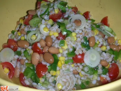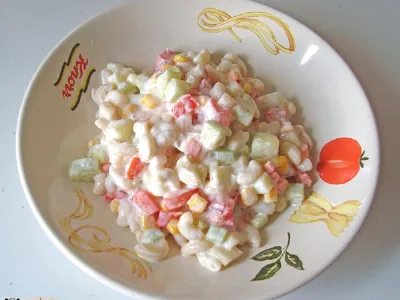 Mediteranska solata z jajčnimi širokimi rezanci