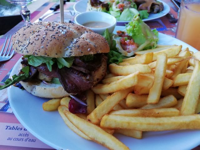In še najboljše in najbolj moderno ... nisem ljubiteljica burgerjev, a burger iz Montignaca sredi avgusta je prekosil vse račje jedi in burgerje doslej. Kako se vam zdi burger, v katerem je "foie gras", račja prsa in čebulna "marmelada"? Ni slovensko - ne po okusu ne po sestavinah, je pa zelo dobro, jetra se namreč na toplem kruhu stopijo... Kdaj gremo v Francijo?