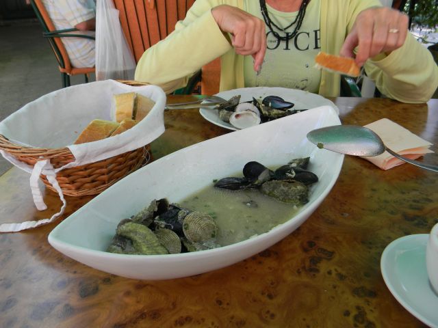 Jutranja vožnja je bila prijetna in po slikoviti pokrajini sva v dobri uri prispela v Korčulo. Sprva sva imela namen,da se tu ustaviva pri enih prijateljih, ki so tudi dopustovali v Lumbardi vendar sva se premislila, saj naju je vleklo naprej. Pred trajektno luko v Korčuli je bila kolona, vse je stalo. No kmalu smos e začeli premikati in videl sem, da je to kolona za trajekt v Orebič na Pelješcu zato sem mojo boljšo polovico poslal po karte. Odšibala je, jaz pa sem se premikal proti trajektu. Na blagajni pa je ena dama plačevala s kartico, Slovenka, kaj pa drugega ki ni hotela potegnili. Bil sem že skoraj na vrsti za vrkcavanje , žene pa od nikoder. No in nekaj hipov zatem sem bil že prvi na rampi, mornar pravi, karto, jaz nazaj, nimam še, a jo bom imel vsak hip , on pravi ja potem pa ven iz vrste in počakati v tem pa že vidim ženo kako šiba proti meni in to povem mornarju. Spustil me je naprej hip zatem pa je bila ob njem že žena in mu dala karte. Tako sva takoj odplula v Orebič od tam pa po prekransem Pelješcu proti Stonu. Bila je zgodnja ura ,ko sva prispela okrog osme je bilo a kljub temu sem se ustavil v znani restavraciji, da popijeva kavo. Ženi so se zahotele školjke,ki so tam najboljše daleč naokoli vendar sem imel pomislek glede zgodnje ure. Simpatično natakario sem vprašal, če bi bilo hudo noro, da naročim školjke ob tej zgodnji uri pa se je samo nasmejala in odvrnila: " Bilo je i ludijih stvari kod nas,verujte mi !". Tako sva seveda krepko zajtrkovala in kot vedno, školjke so bile izvrstne.