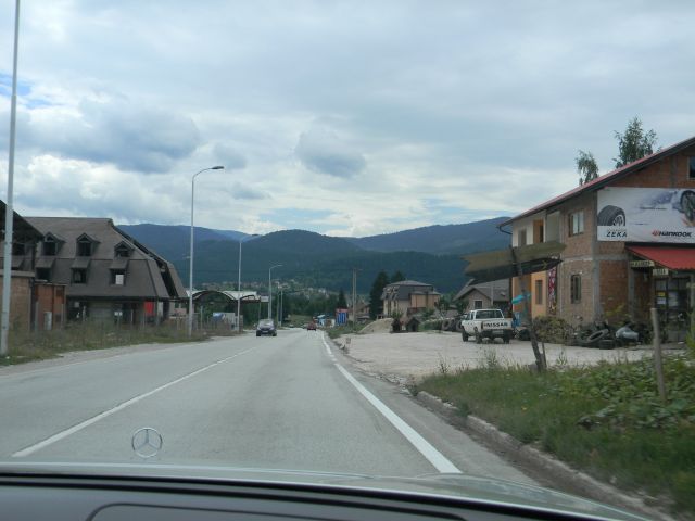 Po zajtrku sem mojo željo povedal gazdi in ga proisl, da naj mi preskrbi kakšnega v redu taxista, kajti bolj udobno je, če te po neznajih poteh nekdo vozi. Bil je začuden nad mojo željo in me vprašal, kaj za vraga bom na Palah počel, češ,saj tam ni kaj videti. No kljub temu je klical enega svojega prijatelja taxista in ta je po slabi uri prišel po naju. Z merecedesem, kaj pa drugega ena velika izvedba , razred S . Zmenili smo se za ceno, hotel je 30 evrov za pot tja in nazaj, na Palah pa lahko ostaneta kakor dolgo želita, jaz vaju bom čakal. Povedal je še da je Šemso, Musliman , takoj mi je pokazal , kje ga je na vratu zadela krogla in kje je potem izstopila in še dodal, da ni bil nek hud borec, vendar je pa branil svojo avlijo pred srbskim napadalcem. Zgovoren človek in takoj smo se zaštekali. Pot do Pal sicer ni dolga vendar so rabno prenvaljali cesto in predor pod enim hribom tako da smo moralo po obvozni cesti čez hribe. Silno slaba je bila ta cesta, ozka in strma ampak Šemso jo je očitno dobro poznal vozil je hitro, tako da sem nekajkrat pošteno zacvikal ko je šel na polno v ovinek in ni viedel pred seboj niti metra.