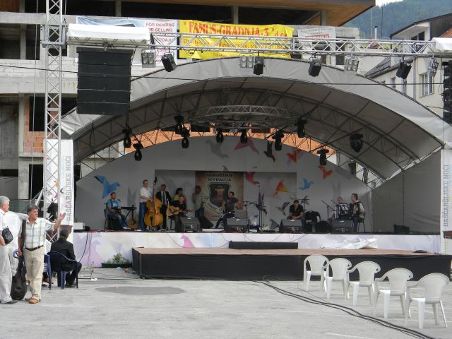Po kosilu sva si provščila popoldanski počitek in ravno sem zadremal, ko me je vrgel v zrak neznosem hrup , ki je prihajal z drugega brega Miljacke. Pogledal sem skozi okno in videl, da pripravljajo nek oder in da bo očitno nocoj tukaj veselo. Seveda ni bilo s počitkom nič več in sva odšla raziskat, kaj so bo dogajalo. Videl sem, da so tam že ekipe Sarjevske televizije in vprašal sem eno od novinark, kaj se pripravlja. Povedala mi je, da je nocoj zadnji večer festivala Baščaršijske noči posvečen sevdahu. Zadeva se mi je zdela zanimiva vendar pa mi je bilo kmalu žal. Koncert se je začel okrog devetih zvečer in je trajal do polnoči. To je bil zadnji dan pred začetkom ramadana in zato še bolj svečan. Je bil zanimiv način, kako sva dogodek spremljala. Na tv je bil direktni prenos in sva sliko tako gledala na tv. Bilo je tako naglas, da je vse bobnela,ton sva torej imela v živo. In ker je med mojo dopustniško opremo tudi daljnogled sva si detajle na odru ogledala z njim. Priznati moram, da tako še nikoli nisem spremljal kakšnen dogodek . Sevdah je sicer lep , kaj lep, čudovit. Vendar, ko ga poslušaš dve uri , ga pa imaš rahlo dosti. Po treh pa ni da bi govoril. Ampak zanimvo je pa bilo.