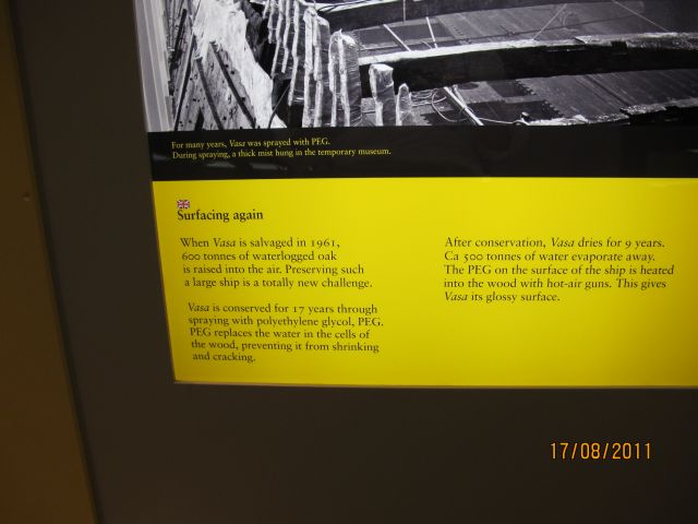 Kakorkoli, ladja je ležala na dnu morja nekaj več kot tristo let, na kar se odločijo, da je izvlečejo. Bila pa je dobro ohranjena, vendar, zaradi velikosti so vseen bili veliki problemi. Pa tudi, ko so je izvlekli, najprej so je namakali v sladki vodi ( se ne spomnem točno, sedaj se mi zdi kakšn let ), da izvlečejo sol, potem so sladko vodo zamenjali s etilenglikolom, pol je treba bilo vse postopma sušit, da se popolnoma odstrani voda in je zamenja etilen glikol ( tudi kakšn let )............
