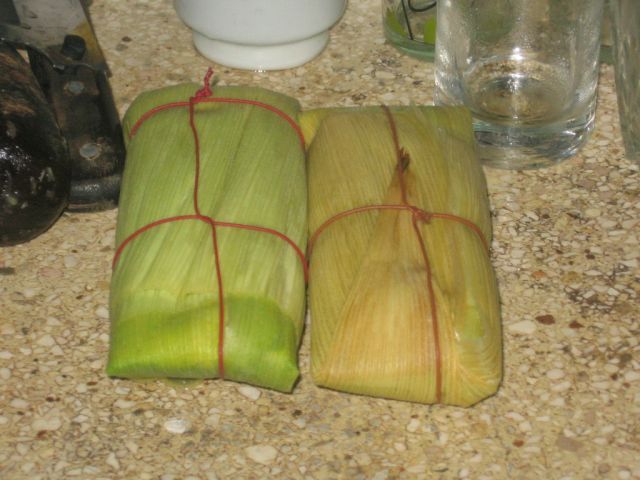 Tamales - zvitki iz bananinih listov, v tem primeru z nadevom iz polente in govedine - pripravljeni v havanski kuhinji