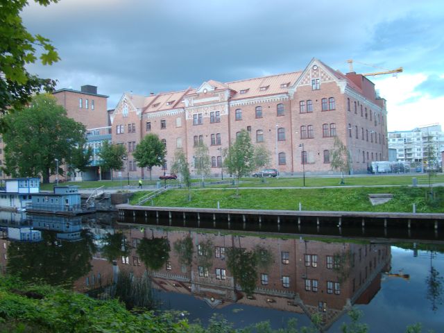 Razgledi z levega brega rečice Fyris, ki deli mesto na dva dela, starodavno mestno jedro in moderni del. Bi stanovali v eni od hišic-ladjic, zasidranih ob rečnem bregu? Jaz bi, takoj.
