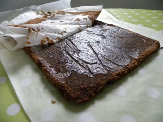 Biskvit je tako rahel, da je potrebno previdno odstraniti peki papir.