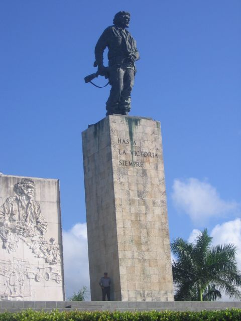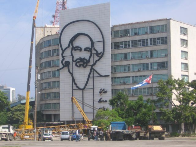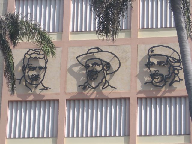 A najprej gremo na Plaza de la revolution. Ravno potekajo zadnje priprave na proslavo ob 50-letnici revolucije. V ta namen so ob lik Cheja na zgradbi notranjega ministrstva dodali še lik Camilla Cienfuegosa, (pre)zgdaj umrlega Fidelovega sodelavca, med ljudmi takrat izjemno priljubljenega revolucionarja. Umrl je v letalski nesreči, v nepojasnjenih okoliščinah, a spomin nanj je še kako živ.