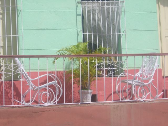in še ena značilnost Kube: stoli, večinoma gugalniki, na terasah, kjer posedajo ob večerih: