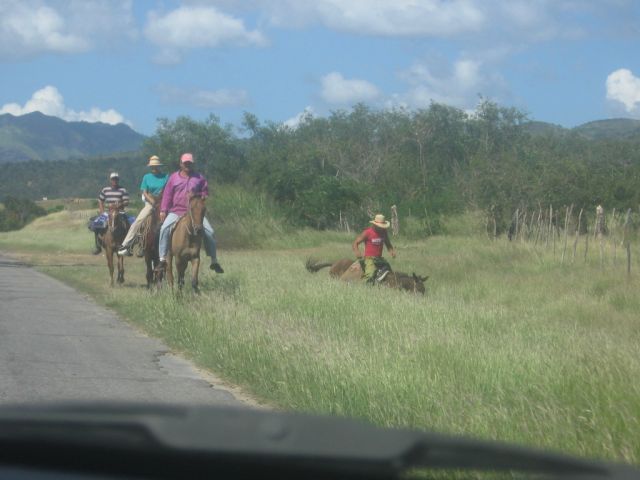 Med vožnjo tja nas je na ustavila policija. Vedeli smo sicer, da sin ni vozil prehitro (že cesta to onemogoča, kaj šele strah pred kaznijo), a nikoli ne veš, kaj bodo očitali. Pa ni bilo nič v zezi s tem. Policist nas je prosil le, da s seboj vzamemo žesnko, ki je stala ob njemu. Da gre v bližnji kraj v službo in nima prevoza. Seveda smo jo vzeli s seboj, kaj pa naj. Zadaj so se malo stisnili, pa je šlo. Med potjo nam je ponudila prenočišče v Pinar del riu, priporočala nekaj lokalov, in seveda vprašala, če smo zainteresirani za cigare. Smo se vljudno zahvalili za ponudbe, malce poklepetali, potem smo pa že itak prispeli do neke bencinske črpalke, kjer je gospa izstopila.