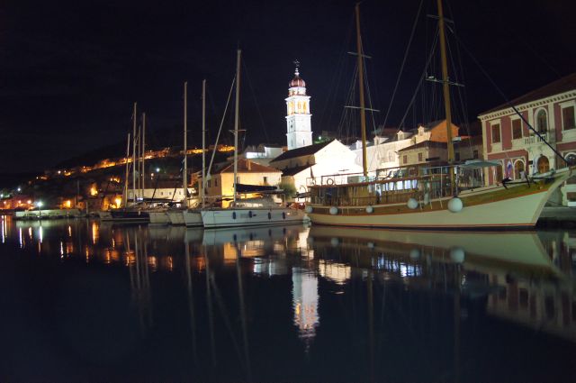 Privežemo se s krmo na obalo (četverovez) in uporabimo komunalni mooring (vrv, ki je čvrsto vpeta v betonski blok na dnu tako da ni potrebe po lastne sidru). Plačamo pristaniško takso, se priklopimo na elektriko, obiščemo trgovino, uredimo jadrnico, se razvadimo z gin-tonicom in se lotimo večerje. Danes je na vrsti Acova temnopivna govedina (glej http://rcum.uni-mb.si/~davor/NavGur/kh41.html) s kropmirjem in zeljno solato, za spremljavo pa je domači plavac.