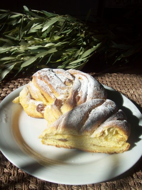 Moji psički gre zasluga, da bom napisala tale recept. Ob jutranjih sprehodih s pesjanarji mi ga je razložila moja prijateljica Teresa. Všeč mi je bil, moj mož, ki sicer zlepa ne pohvali ničesar, je izjavil, da je zadeva boljša kot kupljena tradicionalna Colomba , velikonočno pecivo pri nas, pa ga delim še z vami.
