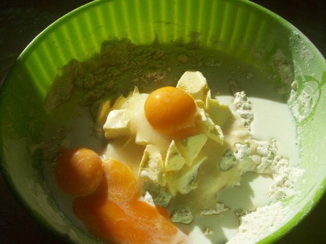 naribamo še limonino lupinico, dodamo sol, malo ruma in toliko mlačnega mleka da dobimo mehko, srednje gosto testo.