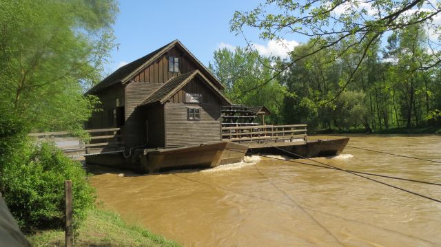 Dan se je že prevesil v popoldan, mi pa smo se odpravili proti vasi Ižakovci in Otoku ljubezni. Na Muri je majhen otoček, kjer so se včasih dobivali zaljubljenci, med njimi tudi beltinška grofica (upam, da sem si zapomnila pravi naziv) z enim revnim fantom. Kakorkoli, to je zdaj priljubljena izletniška točka, kjer lahko vidite tudi plavajoči mlin na Muri in brod. Luštno se je sprehodit po tem gozdnatem otočku ob deroči reki Muri.