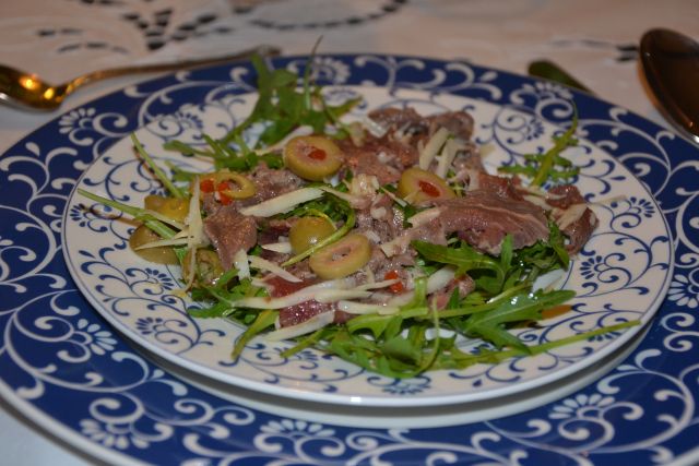 A z govejim karpačom, ravno prav začinjem z odličnim balzamičnim kisom in okrašenim z narezanimi olivami kaže, da še kako obvlada.
