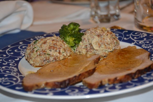 Ajdova kaša z gobami sicer ni tako zelo nepoznana jed, a to, kar smo jedle, je bilo »za dol past«. Sočno, ravno prav začinjeno, gobe na drobno narezane, da sem jih še jaz brez težav jedla … Odlična priloga k tako sočni telečji pečenki, da smo potem pri mizi kar nekaj časa debatirale, kako kuharici to uspe.