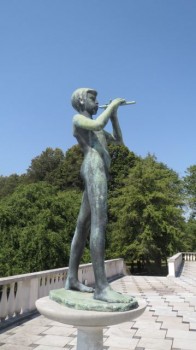 Od doma smo krenili v ponedeljek, ko je manj prometa na cestah, čeprav proti Gorenjski ponavadi ni zastojev. Prvi dan smo imeli že malo splanirani, a za nekatere stvari sva se odločila kar spontano na poti. Pred nekaj leti sva se ustavila na Brdu pri Kranju, vendar si takrat nisva ogledala parka, ker se nama je zdelo škoda denarja. Ob tem mi postane kar malo nerodno, saj sva marsikje v tujini pogledala stvari in brez problema plačala, v domovini pa se obnašava kot škrta. Ob vožnji mimo Brnika sva v pogovoru prišla tudi do te teme, ko sem jaz predlagala, da bi pa letos lahko šli pogledat ta slavni protokolarni objekt. Pa smo šli. Tokrat sem plačala teh 2,5 evra na osebo, da smo lahko uživali v tem prečudovitem parku. Več informacij si lahko pogledate na njihovi uradni spletni strani http://www.brdo.si/. Vratar nam je ponudil zloženko s predlaganimi sprehodi, izbrali pa smo najkrajšega. Najprej smo seveda videli Kongresni center, ki impozantno stoji odet v črno barvo. Mimo njega in konjušnice nas je pot vodila do dveh ribnikov. Večji, gornji, na katerem se lahko popeljete s čolnom in spodnji, na katerem je polno lokvanjev. Ob teh ribnikih smo se ustavili in pomalicali. Nikjer ni košov za smeti, tako da smo morali vse ostanke lepo odnesti s sabo. Med malico se nam je pridružil labod, ki je verjetno prišel prosit za malo hrane. Ves čas nam je sledil, dokler nismo odšli drugam. Pot nas je vodila skozi ozki drevored do gradu, ki si ga žal nismo mogli pogledati, saj imajo oglede samo ob vikendih in praznikih. Smo pa lahko občudovali teraso, vodomet in Kalinovega Pastirčka. Šele od blizu smo lahko opazili, da piščali nima v ustih; a torej igra na piščal?
