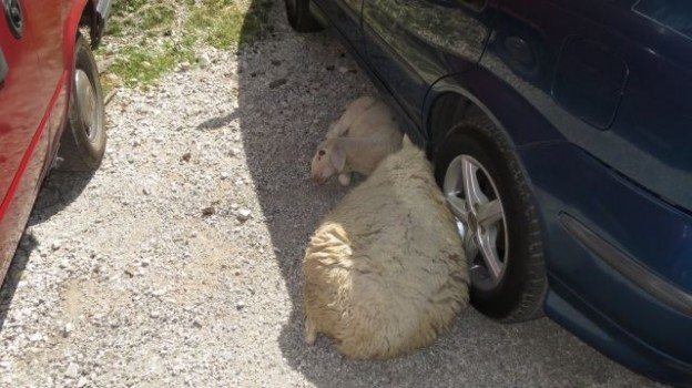 V sredo smo se po zajtrku odpravili na Vršič. Ker je bil lep dan, je bilo veliko kolesarjev, ki so preizkušali svoje meje. Naštela sem jih vsaj 30, ki so v tem času kolesarili po tej strmini. Meni osebno je to preveč mazohistično, a jaz sem pač ravninski človek. Na vrhu je bilo že vse polno pločevine, tako da smo komaj našli en prostor za parking. Na srečo nismo bili čisto ob Tičarjevem domu, tako smo se izognili plačilu treh evrov za parkirnino. Na Vršiču je bilo prijetno hladno, glede na vročino v dolini, razgled po okoliških zeleno-sivih gorah je bil čudovit, najbolj zanimive pa so bile ovce, ki so iskale zavetje na raznorazne načine.