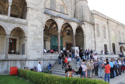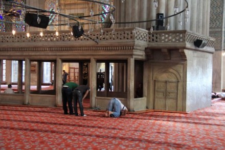 Edino tole v Modri mošeji, ko opisuješ, da je ločen del za vernike in nevernike - nimam te izkušnje. Mi smo bili tik za verniki, ki so bili ravno pri molitvi, smo stali na tepihu brez polivinila, potem pa so ženske opozorili, naj med molitvijo gremo v del mošeje, namenjen le ženskam. Sva z možem počakal na konec obreda in potem sem tudi jaz hodila po osrednjem delu mošeje, nič ni bilo ločeno za vernike in nevernike oziroma za turiste in vernike, tako da mi je to novo.