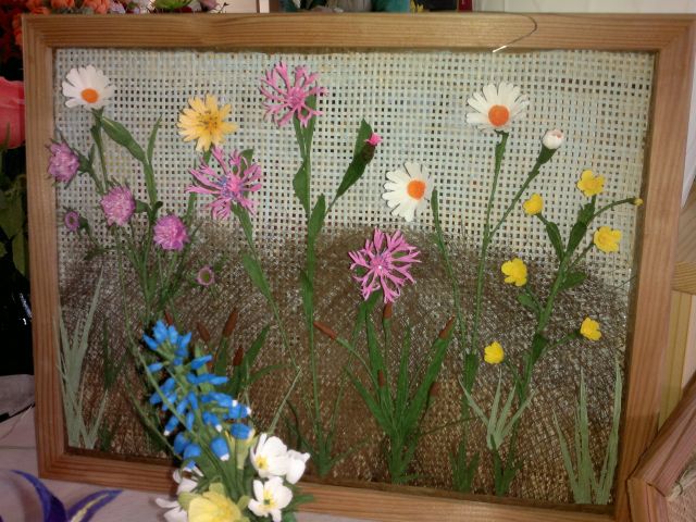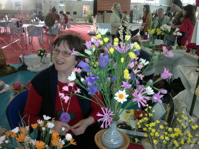 Našli sva tudi gospo, ki je prava mojstrica v izdelovanju cvetja iz krep papirja. Kar priznajte, da niste vedeli, da tisti rumeni nageljni na prvi fotografiji niso živi :)