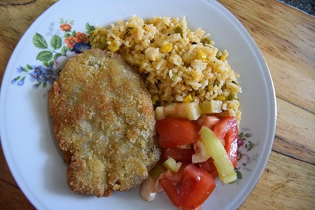 Občasno dodamo na jedilnik še nekaj pereščkov zelene solate s kisom in oljem. In potem se raznolikost bliža koncu. Tokrat smo pripravili nekaj takšnega, česar se vsaka, celo popolna začetnica v kuhinji, upa lotiti, a je vseeno malce drugače. Ocvrti zrezek bo imel lep pridih po kokosu, kot tudi po ajdi, kar ga bo naredilo še mamljivejšega, paradižnikova solata bo dala jedi nekaj kisline in svežine, maslena rižota pa bo vse skupaj povezala v celoto.