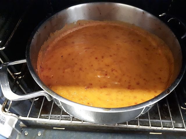 Tema je pečena marmelada. Danes sem v kuhinji videla 3 kg breskev, ki mi gnijejo. Škoda jih je. Peciva ne bom pekla, saj veste, hujšam. Marmelada? Joj, za 3 kilograme ne bom stala tri ure ob štedilniku ( moje mnenje je namreč, da se mora marmelada kuhati zelo dolgo, da je dobra). Saj res. Spomnim se moje babice, ko je zjutraj vrgla narezano sadje in sladkor v posodo, jo dala v pečico na 180 stopinj in odšla na njivo. Dolžnost otrok je bila samo, da smo vsake toliko malo premešali in pogledali, da ne brbota preveč. To bo to. In evo, moja marmelada se že peče. Pred leti sem tako delala tudi slivovo in tudi jagodovo. Za prste polizat.