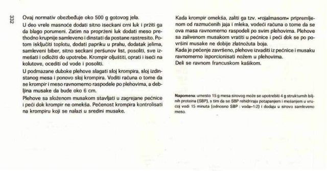 Krompir skuham na rezine in izmenično polagam v posodo z mešanico mesa. Najprej pečem brez polivke, nato dodam mešanico polivke jajc in kisle smetane in zapečem da je malo rjavkasta.