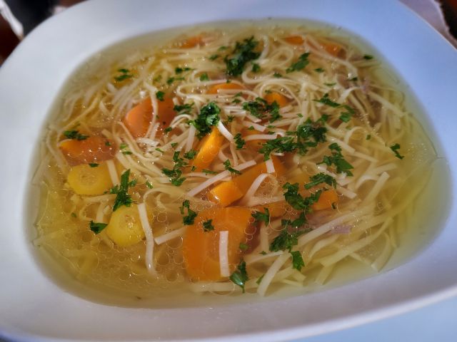 2.11 goveja juha z rezanci, pečen piščanec, teletina, pražen krompir, solata