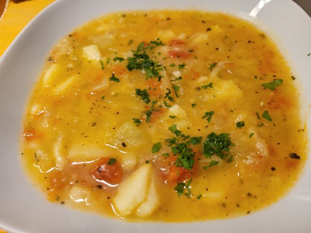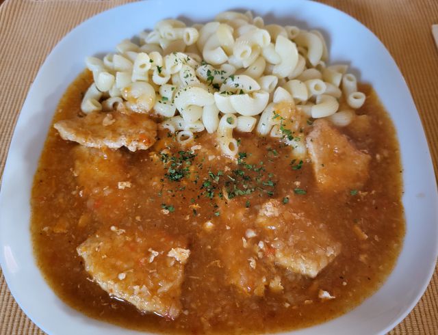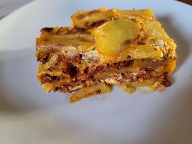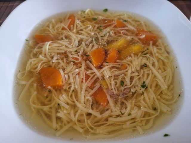 25.10 goveja juha z rezanci, preostanek musake, solata