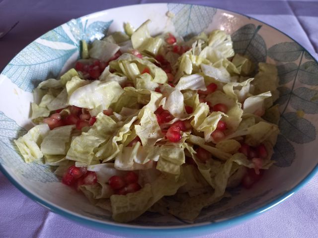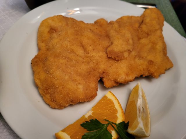 Goveje-kurja juhica; popečeni žganci, paniran sv.zrezek, koprov zos; štrucar s krompirjem in granatno jabolko; kozarec vinčka