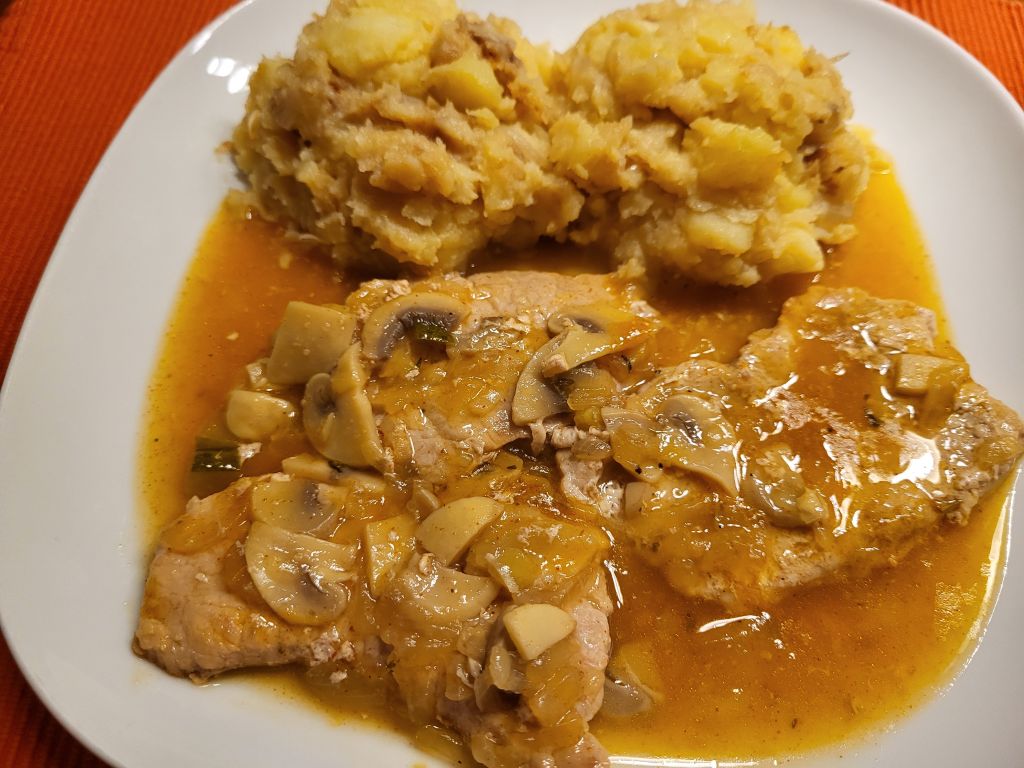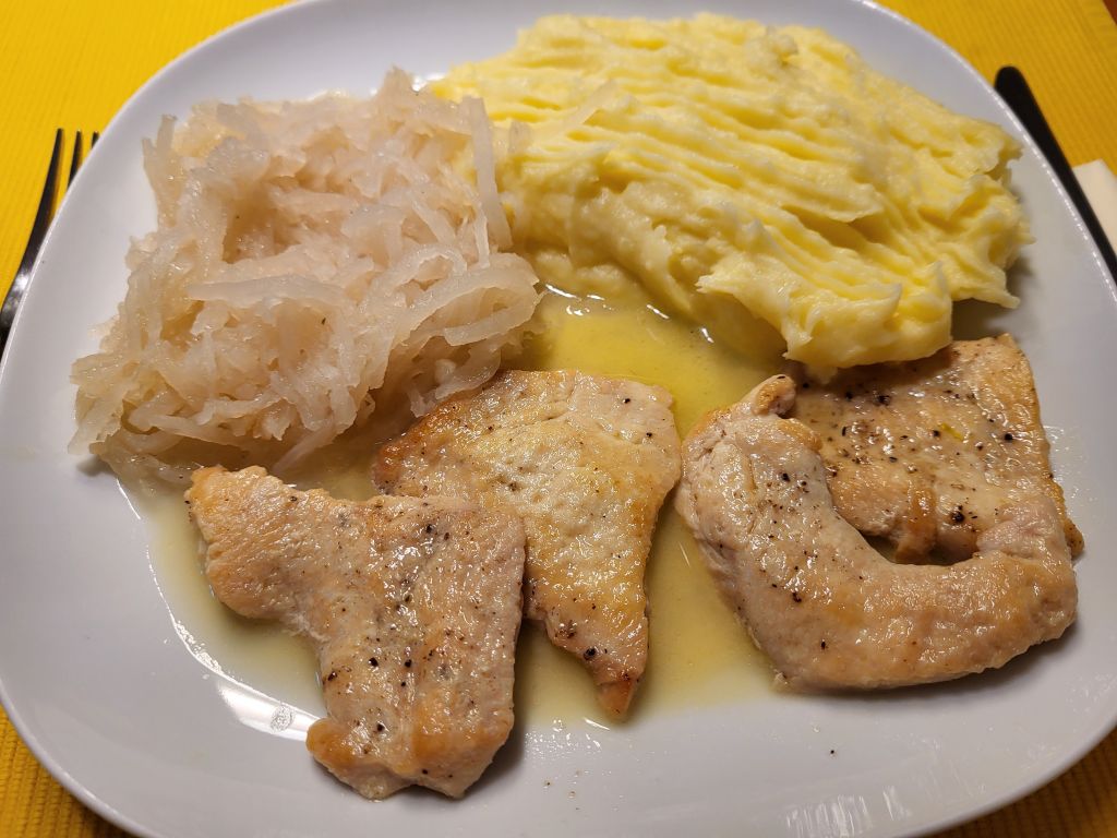 15.1. Zrezki v omaki, pražen krompir, solata