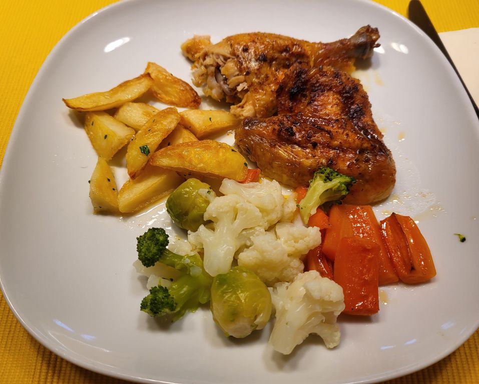 17.1 goveja juha, mesna pečenka, piščanec, pečen krompir, zelenjava, solata
