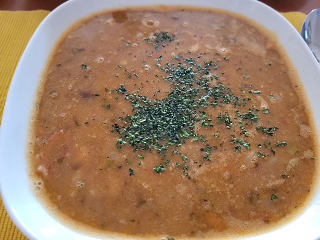 18.1 fižolova juha, kranjska klobasa, solata