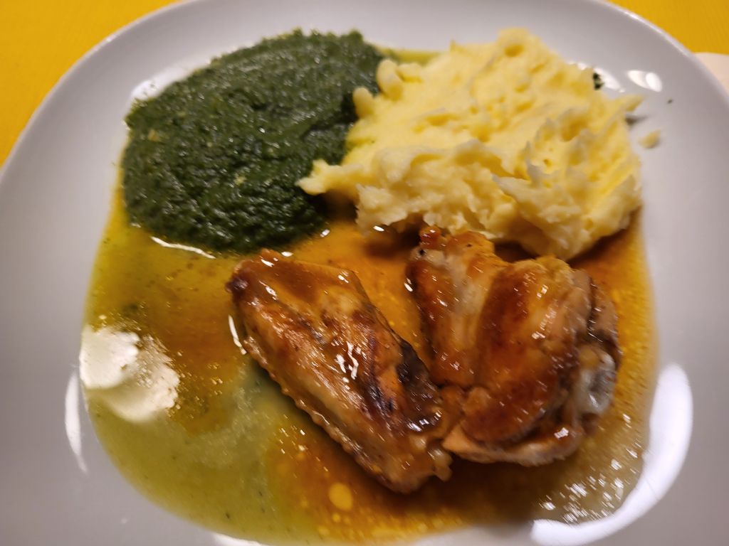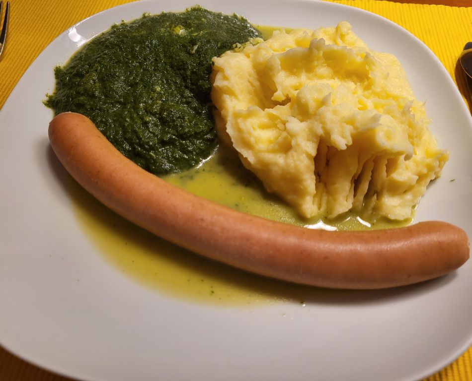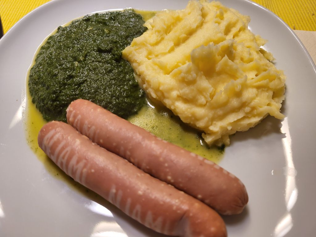 23.1. špinača, pire krompir, hrenovke, piščanec