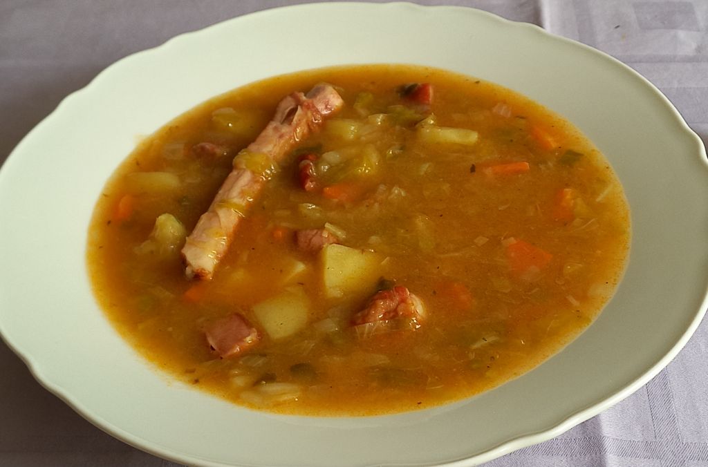 Enolončnica s sladkim zeljem in suhimi rebri; skutno-jabolčni štrudelj