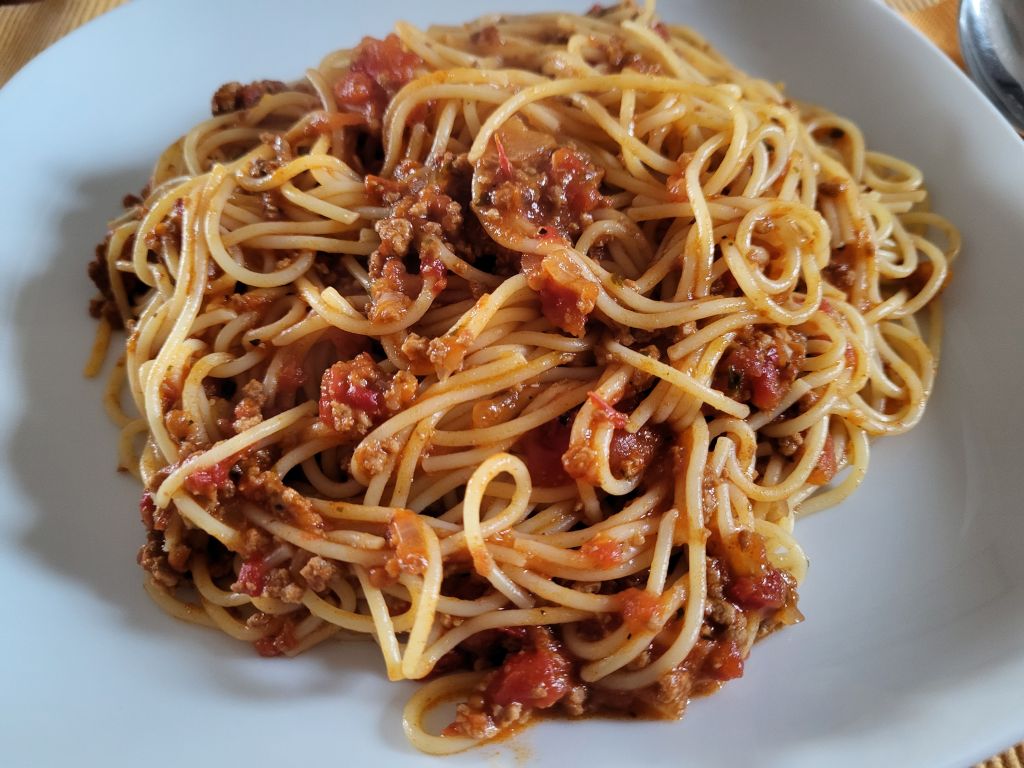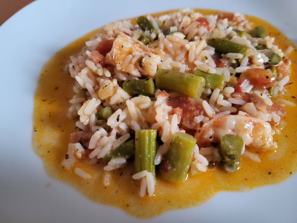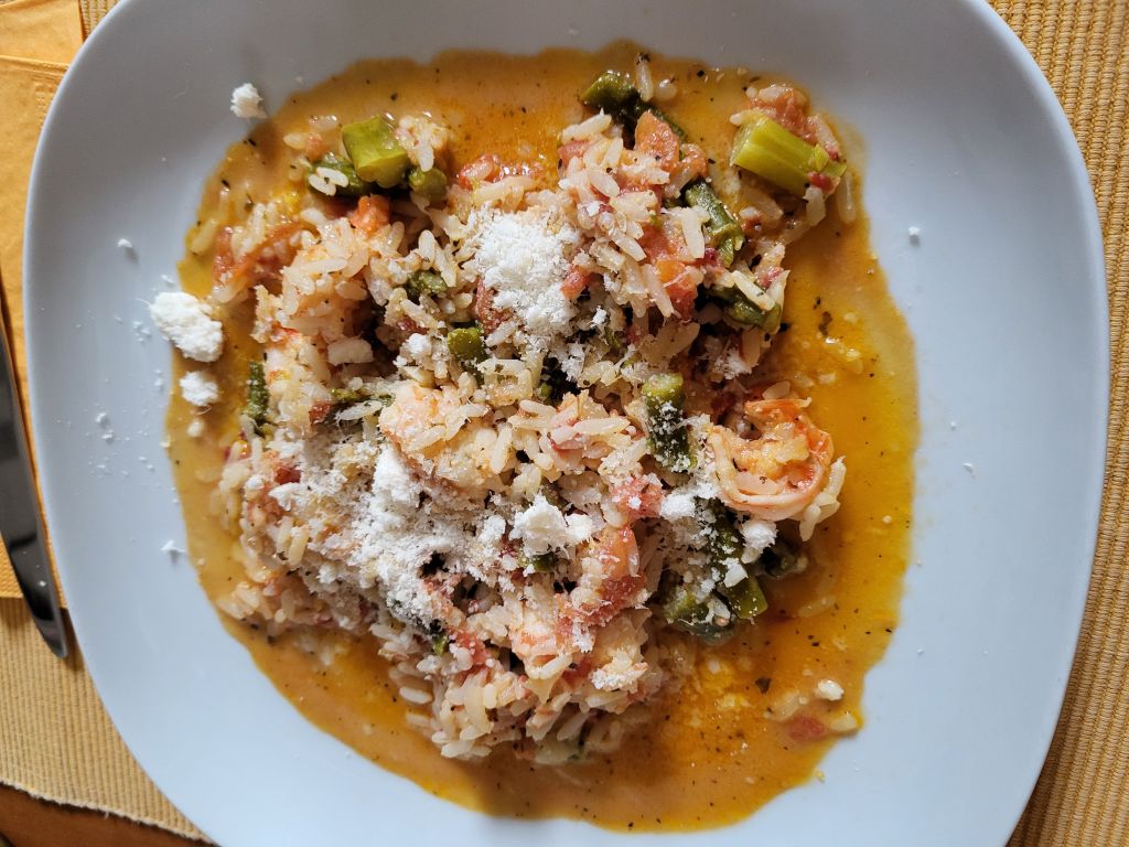 24.3 testenine z mesno omako, zame rižota z gamberi, solata