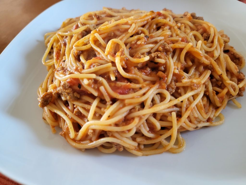 Špageti s paradižnikovo omako in baziliko