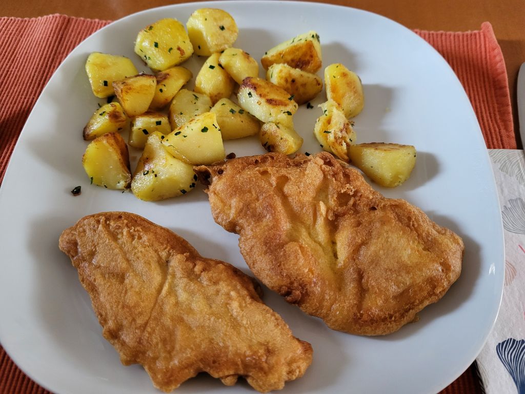 12.4 pariški zrezki, popečen krompir, zame file postrvi, solata