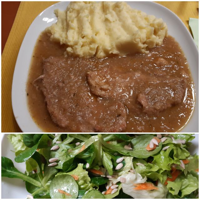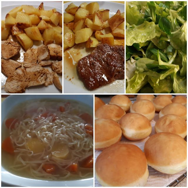 V torek sem pozabila objaviti slike..Imeli smo govejo juho z domačimi rezanci, pečen krompir, meso in solato...in sveže domače krofe