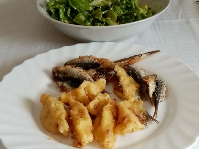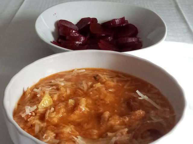 Goveja juhica; žlikrofi na drobtinah, pečene sardelice; zelena solata; pita za vsak okus