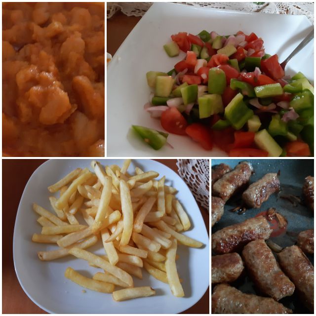 V četrtek za kosilo na hitro čevapčiči, šobska solata, pomfri, kruh, tavče gravče, ajvar...