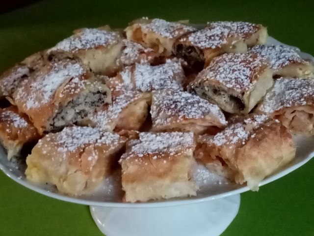 zame-zabeljeni sirovi štruklji na drobtinicah z maslom