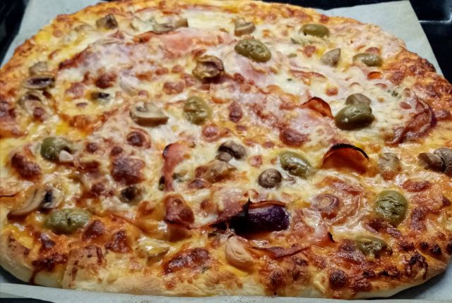Zelenjavna juhica, prelita z ostanki goveje juhe od včeraj; pica