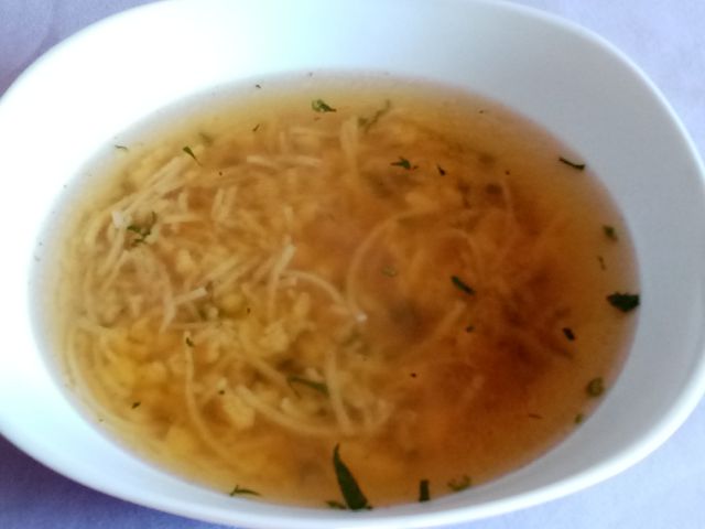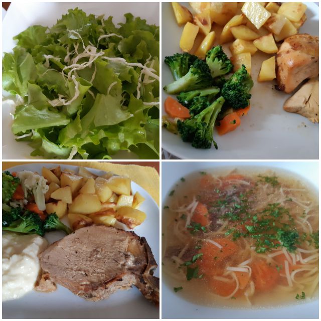 V nedeljo goveja juha z rezanci, preostanek sobotne pečenke, pečen krompir, solata