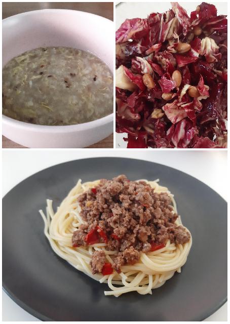 Danes: pečena piščančja bedra, peperonata, radič ("primo tajo"), teran in voda lp, mzm