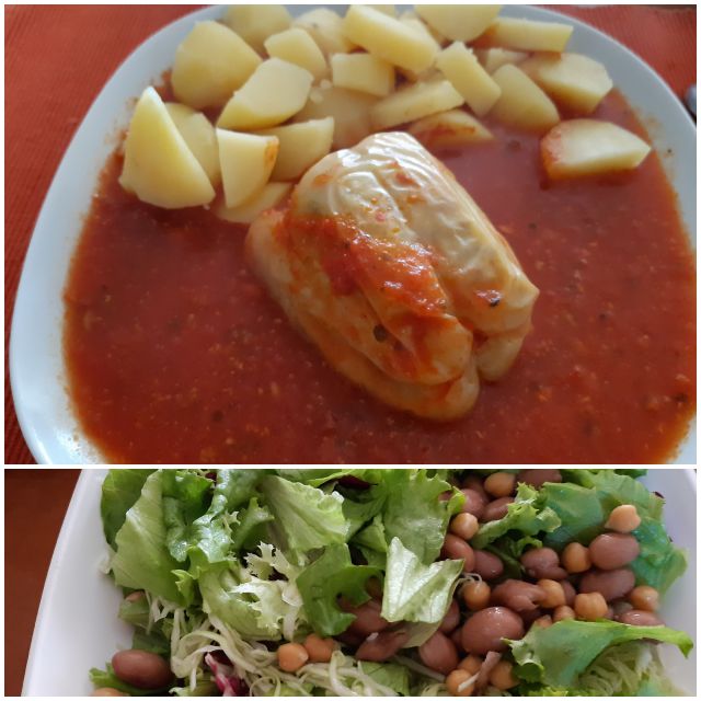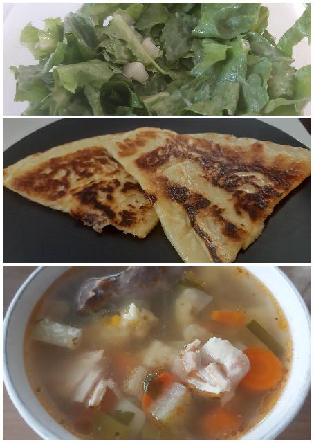 Piščančja obara z mlinčki, "funšterc", endivja s krompirjem: