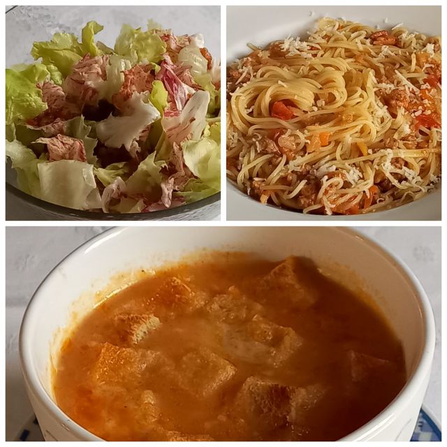 Čebulna juhica; špageti bologneze; zelena solata