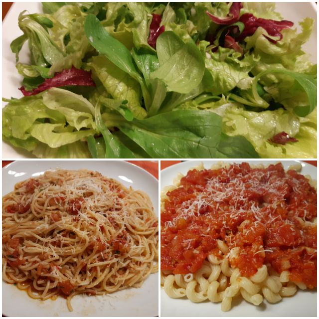 V torek testenine s paradižnikovo omako, ene s čilijem, solata