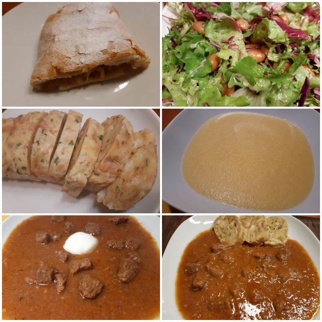 Danes goveji golaž, polenta, kruhova štruca, solata, jabolčni zavitek