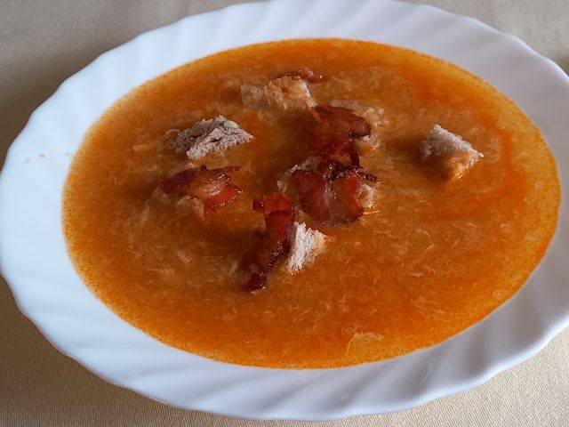 Za zajtrk sva še zadnjič letos jedla burek, zato je kosilo bolj siromašno, in sicer prežganka s krutoni in popečeno slanino.