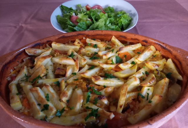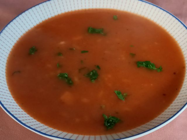 Paradižnikova juhica; đuveč; zelena solata s paradižnikom